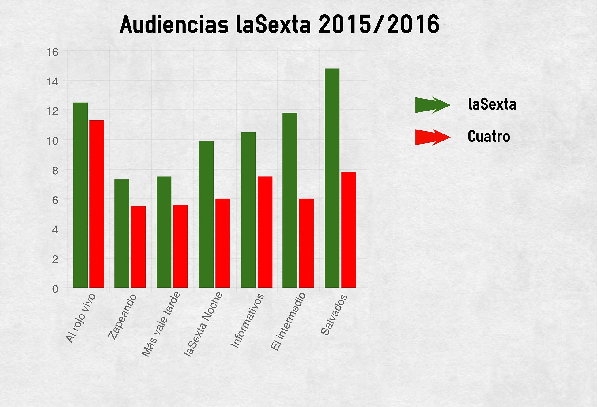 laSexta ha conseguido hacer marca con algunos de los formatos que llevan en su parrilla desde hace años y que se han convertido en referencia para los espectadores. Al rojo vivo es uno de los puntos fuertes de laSexta ya que es el programa que despierta al resto de la programación de la cadena y se convierte en un hueso duro de roer.