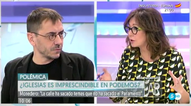 Antes, Monedero respondió sobre la posición de los medios de comunicación ante la política. “Los medios necesitan escenarios de guerra para que más animosa la cosa”, dijo sobre el enfrentamiento entre Pablo Iglesias e Íñigo Errejón.