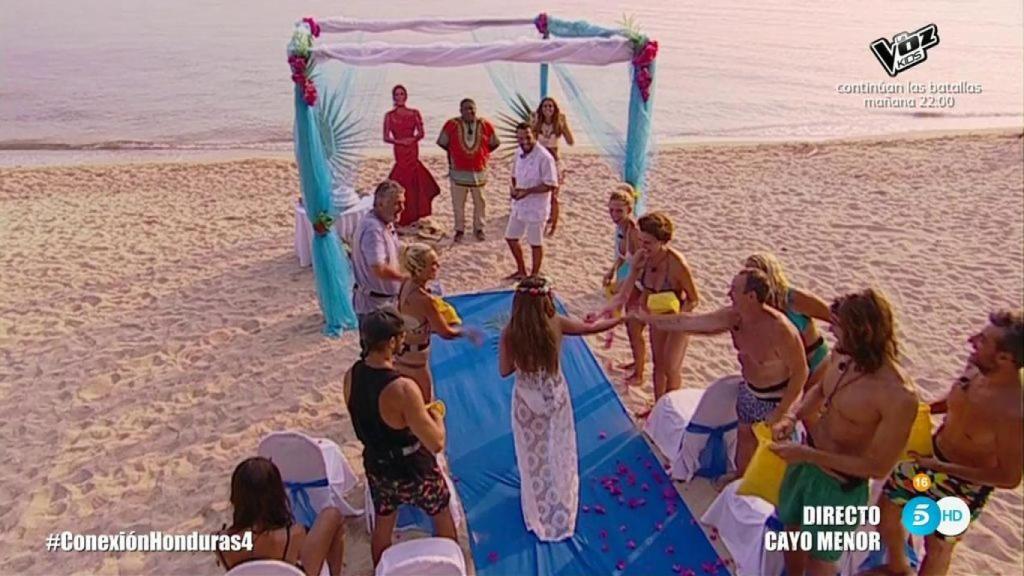 Pero en Supervivientes sabían que tenían que seguir explotando esta visita después del espectacular dato de audiencia conseguido el jueves pasado, con su máximo de temporada. Por eso organizaron una boda en la playa para este domingo con todos los concursantes como invitados al encuentro.