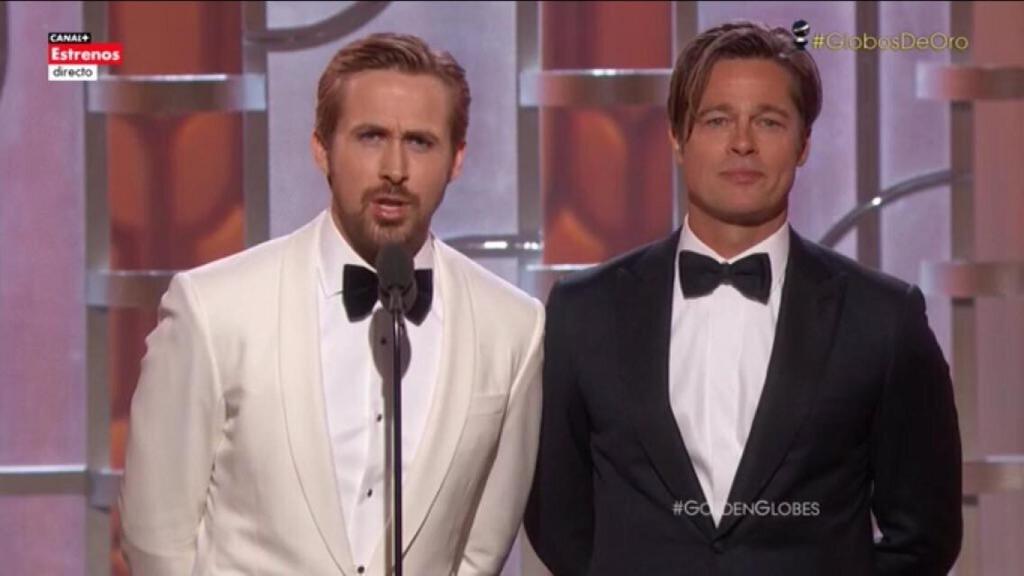 Ryan Gosling y Brad Pitt han presentado juntos la propuesta de La gran apuesta como Mejor película musical o de comedia. Entre ellos ha habido muchas bromas dado que querían presentar en solitario.