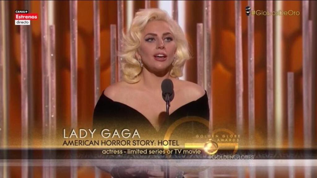 Lady Gaga ha dado otra de las sorpresas de la noche. La actriz, nominada por primera vez en los Globos de Oro, ha logrado este galardón que ha recogido muy emocionada ante lo inesperado. Ha sido la sustituta de Jessica Lange y lo ha hecho con éxito, razón por la que se ha llevado este premio.