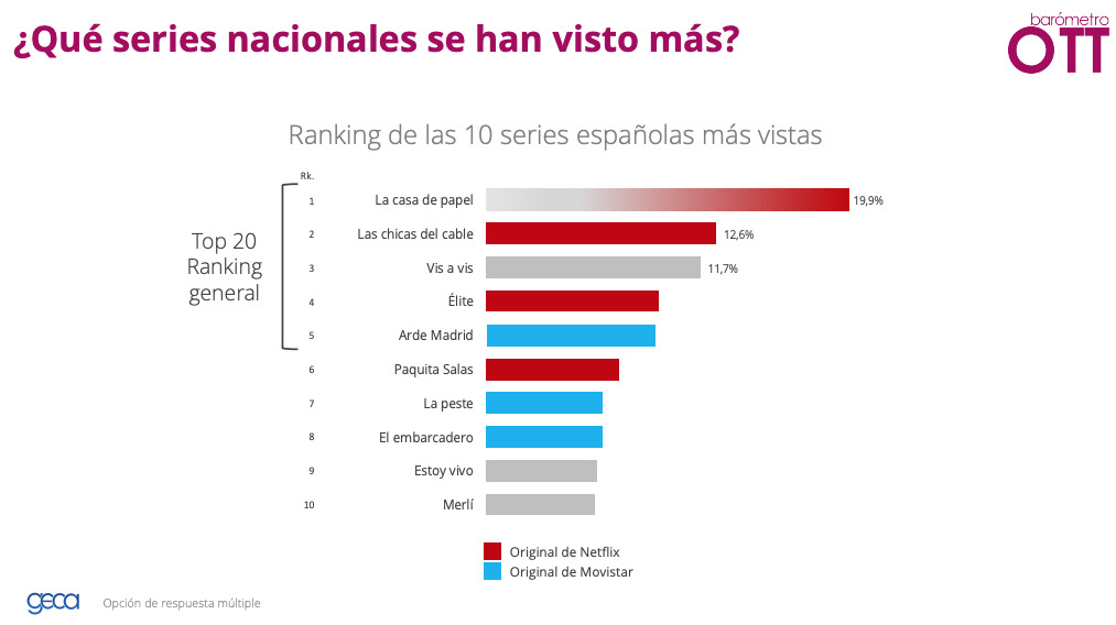 Sin embargo, según el Barómetro OTT de GECA, una muestra en la que se ha contado con 1.000 individuos por oleada (mayo, septiembre, diciembre) y tiene un nivel  de confianza del 95,5%, esta lista no se ajustaría a la realidad.
