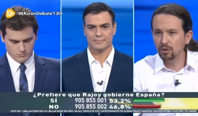 Y es que una imagen vale más que mil palabras. Por eso el PP ha empapelado las calles con su cara más televisiva. Su Soraya. Nuestra Soraya. La que baila. La que se moja. Y la que moja. Y besa. Y la española cuando besa, besa de verdad. Este año me he tenido que tragar tantas encuestas como Riveras (que no Riberas). Lo cierto es que no conozco a nadie al que le hayan preguntado por su intención de voto. Debe ser que mi dirección y la de los míos no es digna de las páginas amarillas. Lo mismo me pasa con los audímetros. Pero ya podrían haber preguntado en alguna de sus rondas si preferimos a Rajoy o a Soraya como presidente. Al menos lo podría haber hecho 13tv con sus preguntas sentencia.