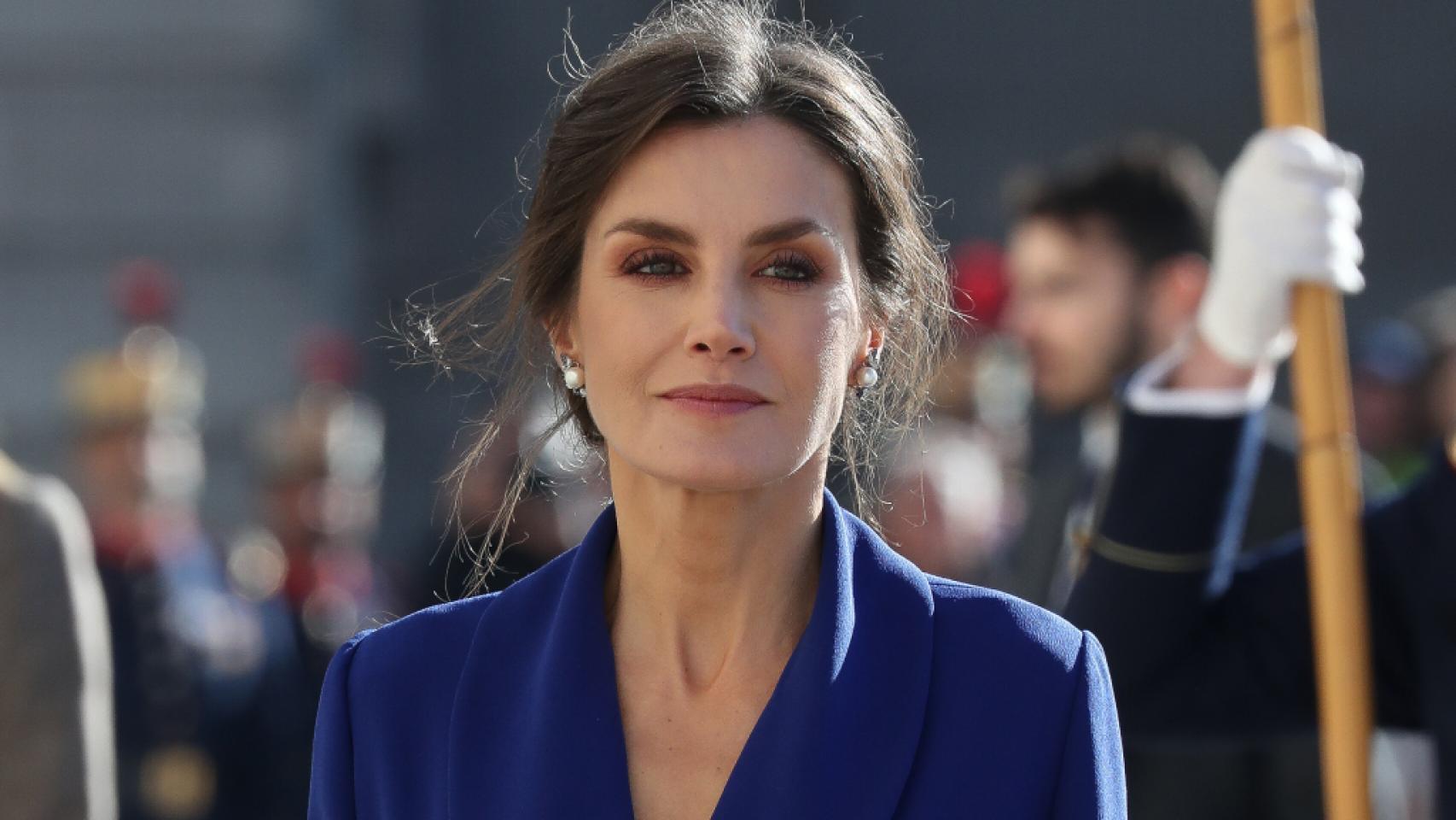 El protocolo de la Pascua Militar, como cualquier acto castrense, es bastante serio: mujeres de largo y hombres con uniforme de gala. En 2020 Letizia no quiso faltar a las normas y estrenó un vestido, cuyo diseñador es un misterio, de corte chaqueta largo, como manda el protocolo. Pero en esta ocasión, apostó por una sutil a la par que sexy abertura lateral en el vuelo de su vestido, que dejaba a la luz sus estilizadas piernas. La Reina escogió uno de los colores que junto con el rojo, más le favorece: el azul Klein.