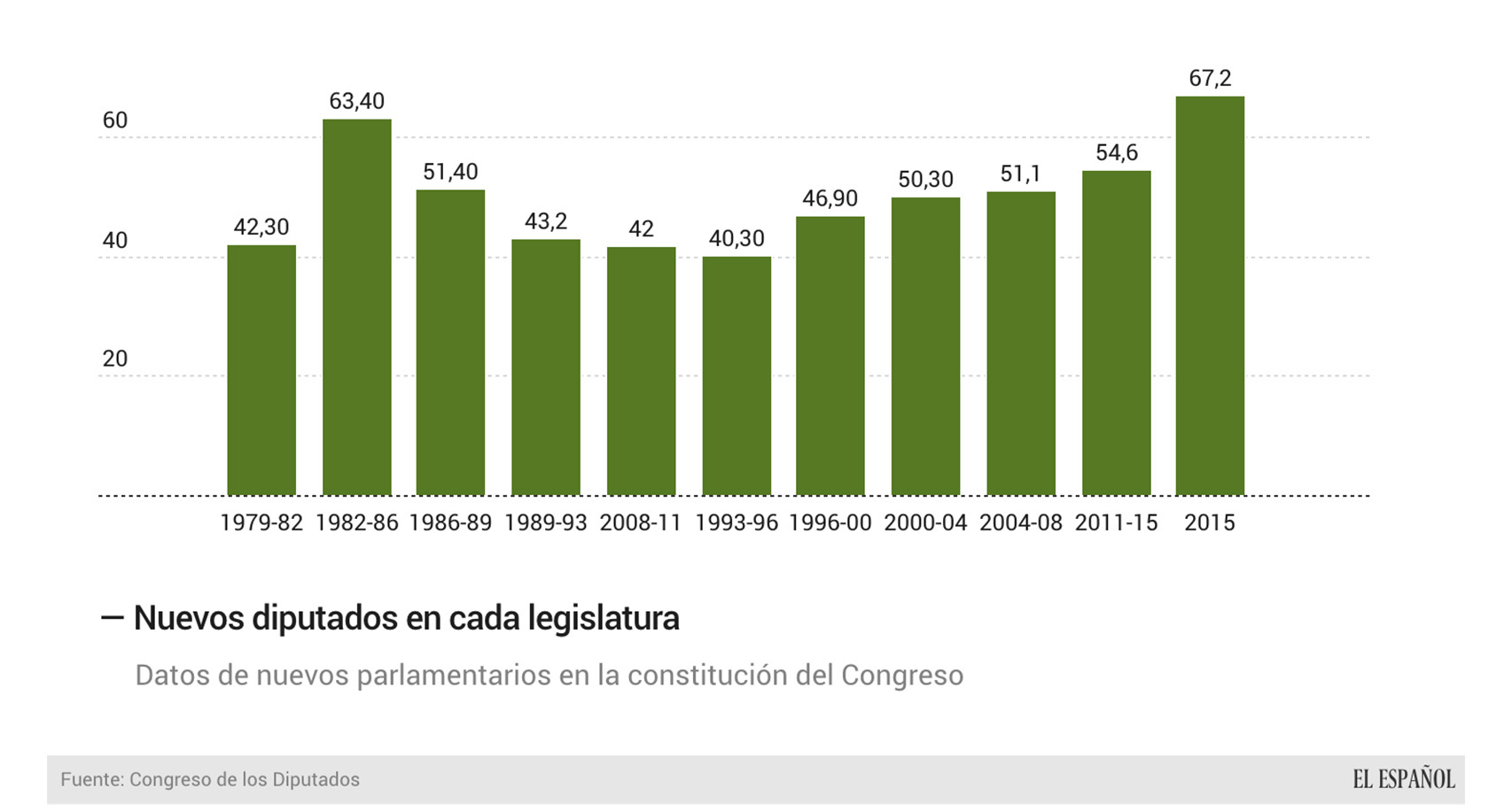 La fragmentación del nuevo Congreso surgido de las elecciones del pasado domingo supone una renovación los representantes que ocuparán un escaño en la nueva legislatura.