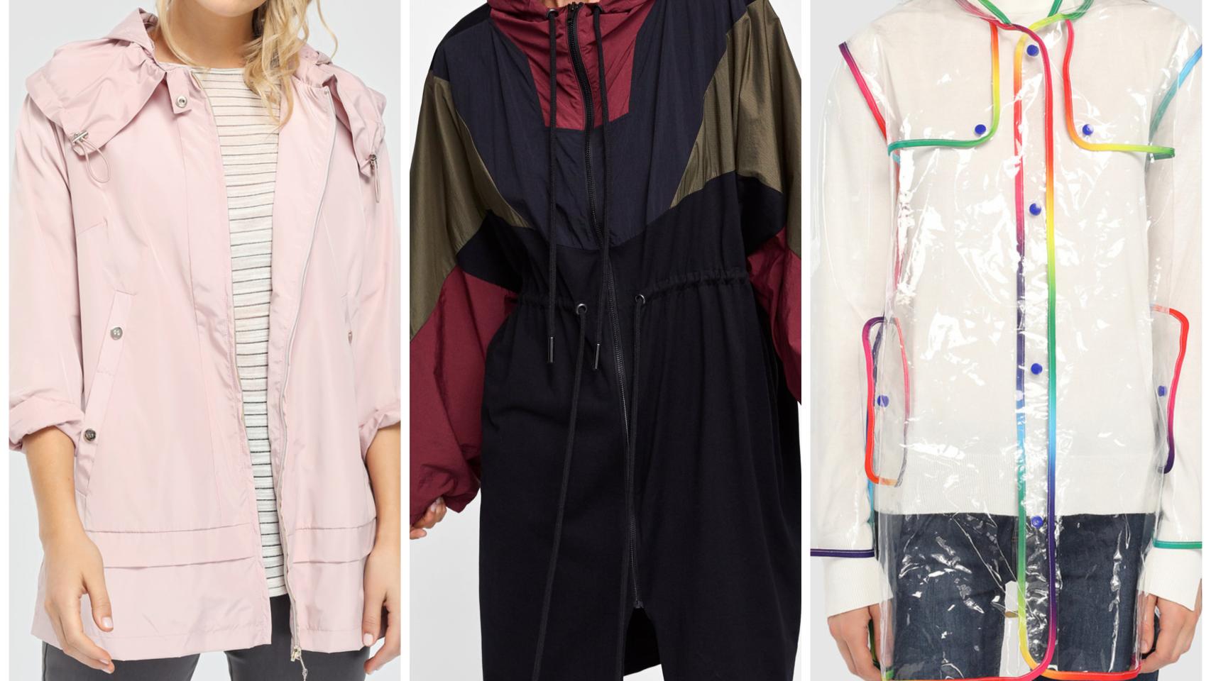 Chubasquero transparente con vivos multicolor en los remates con un precio de 19,90 euros. Tiene capucha, cierre de automáticos y dos bolsillos.