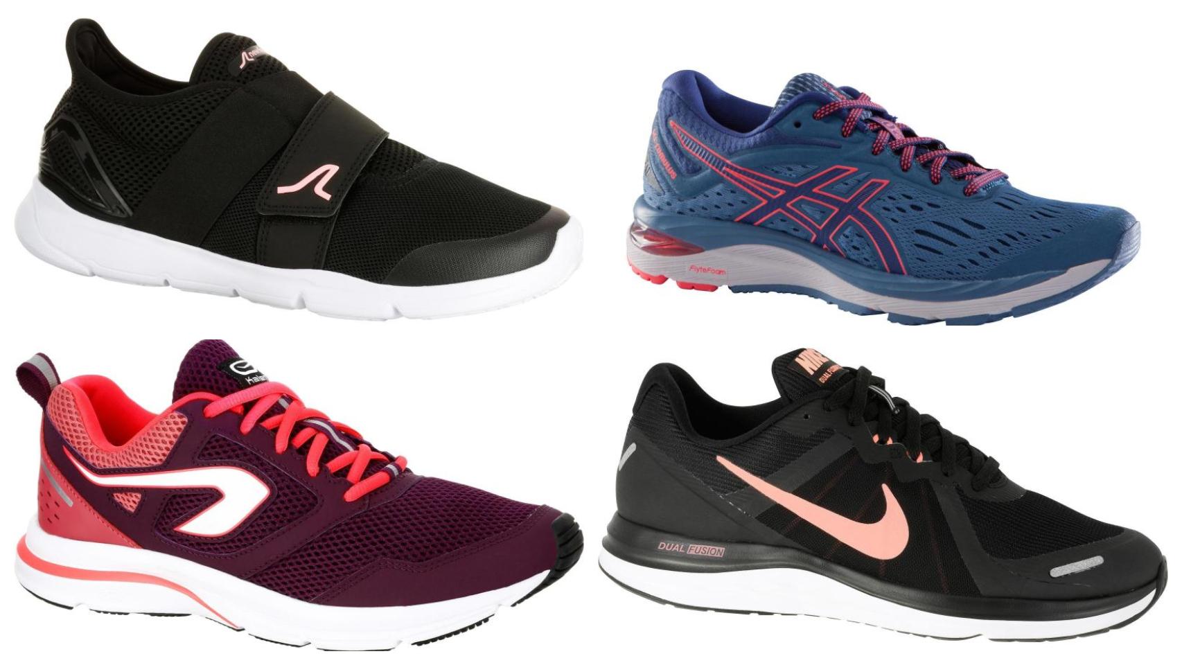 Zapatillas de color negro con suela blanca pensadas para las practicantes de marcha deportiva que realizan sesiones de 30 a 45 minutos y/o 1 vez a la semana, con tiempo seco. Están valoradas en 21,99 euros.