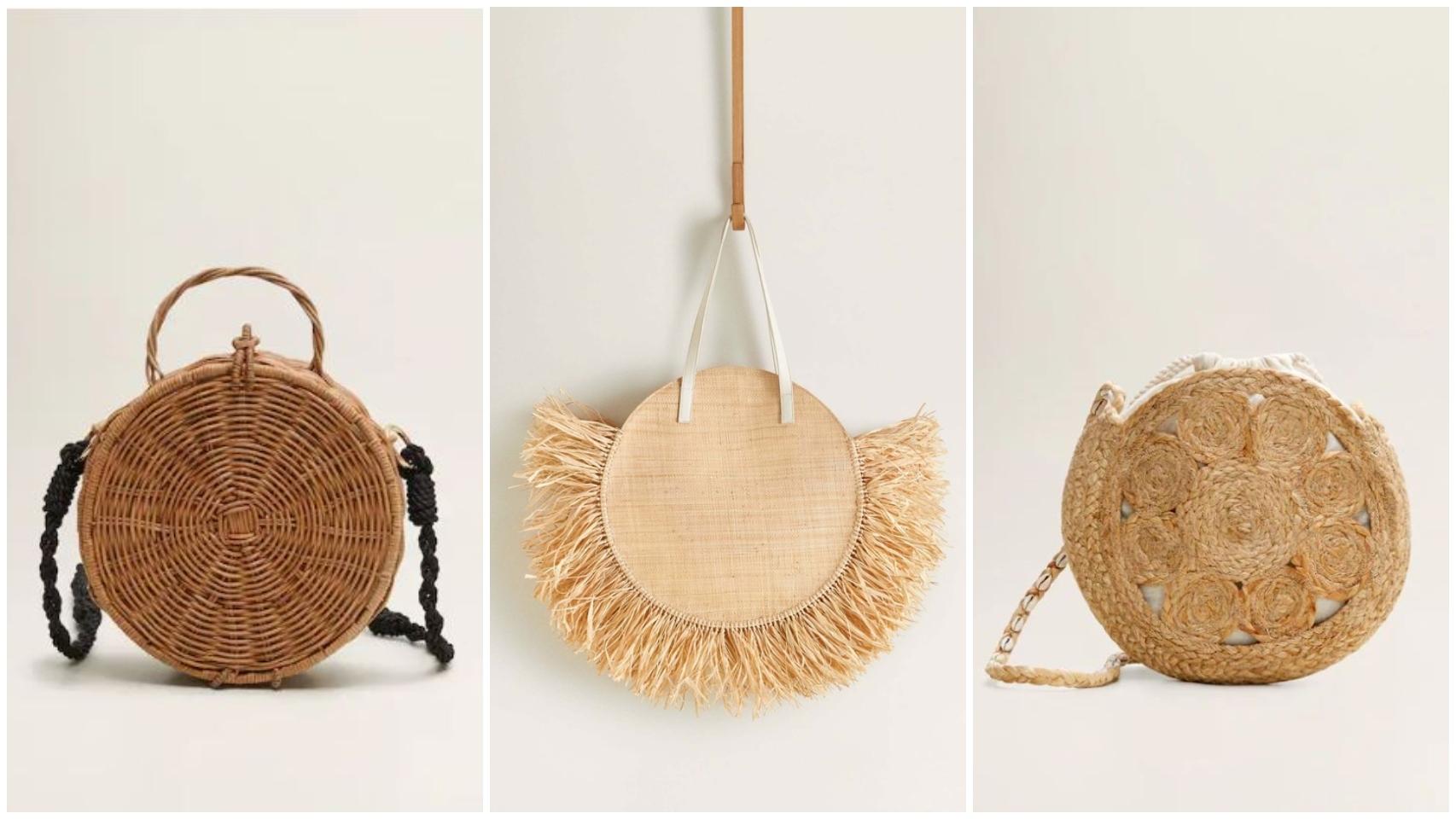 Flecos de paja adheridos a un bolso de rafia en diseño redondo. Es una pieza que se puede comprar en Mango y su precio es de 39'99 euros. La originalidad de la pieza radica es su versatilidad: sirve para un día de playa o para una noche de cena y paseo de verano.