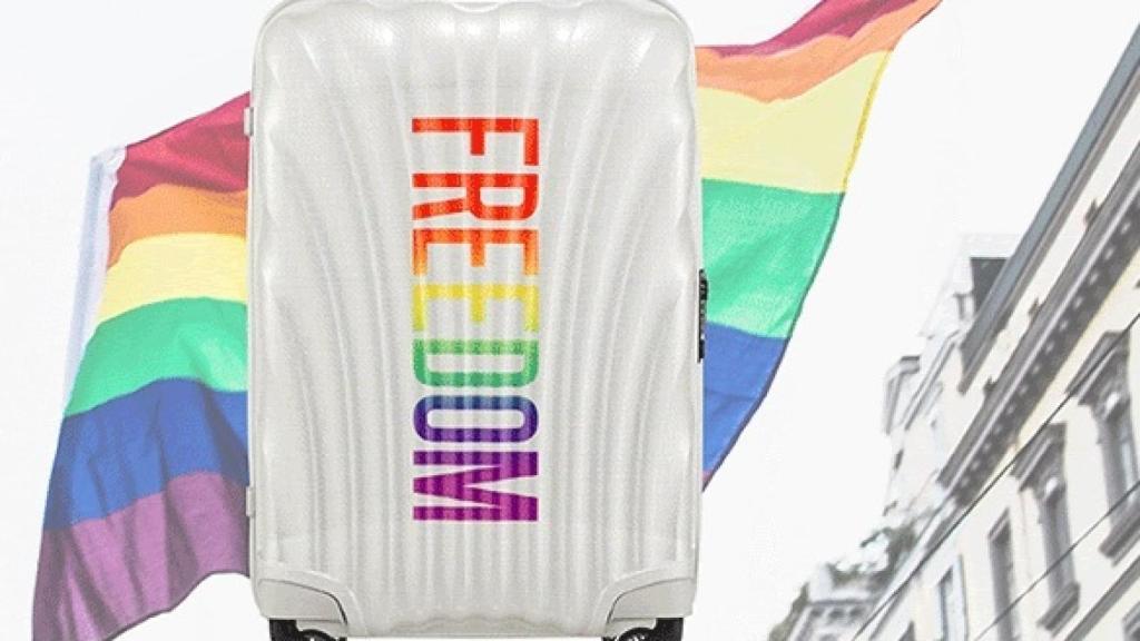 La reconocida marca de equipajes Samsonite no se quiere perder las fiestas del Orgullo LGTBI. Para ello, estará presente en este 2019 con su nueva colección, que trata de una edición limitada de su afamada maleta, esta vez personalizada con la palabra "libertad" simulando a la bandera con el arcoiris. Está fabricada en Europa, su tejido es de polipropileno, y resulta muy resistente y ligera.
