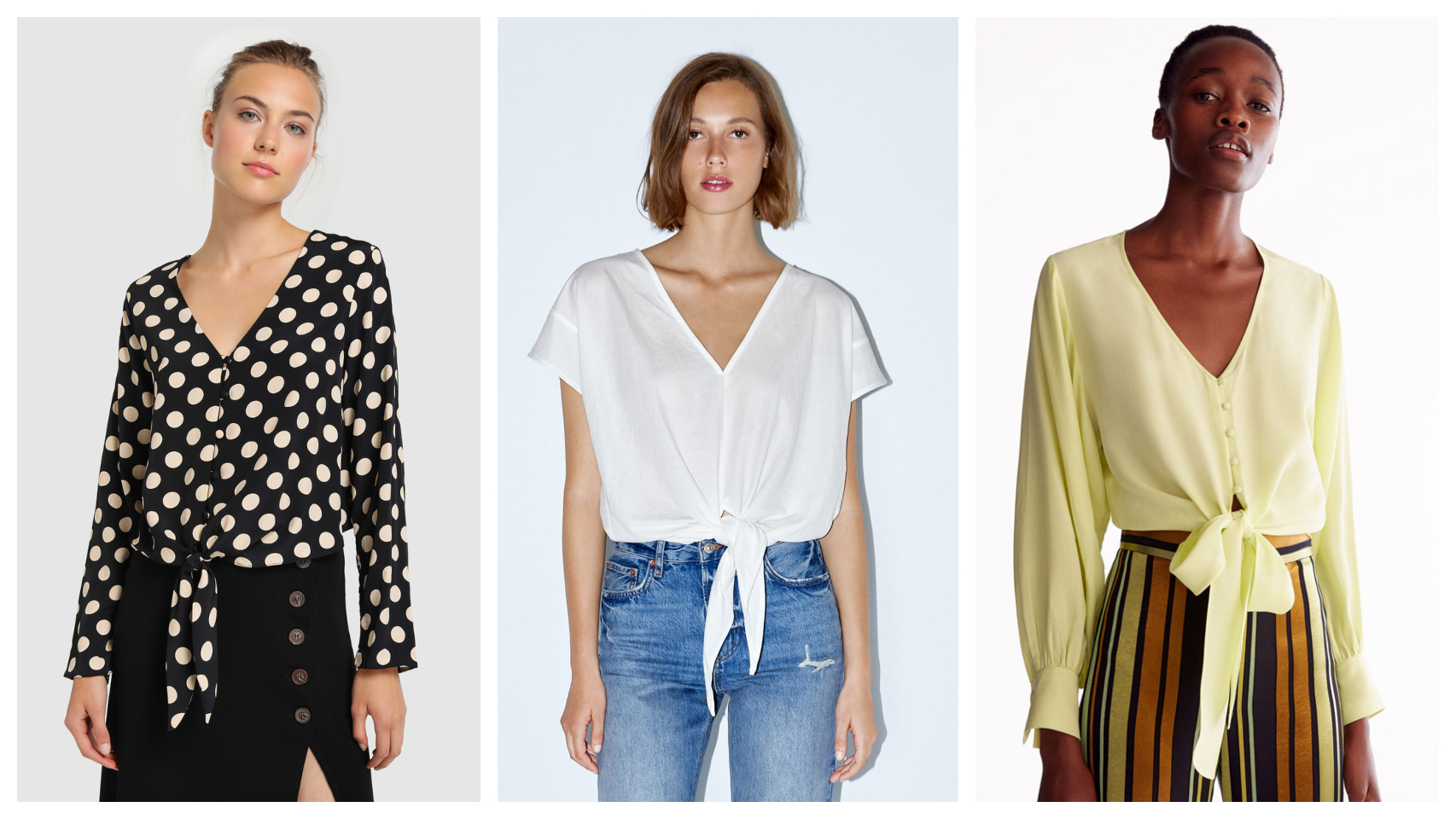 Este modelo aúna dos de las tendencias favoritas de las 'influencers' esta temporada: los lunares y las blusas anudadas. Se trata de una prenda en color negro con lunares blancos, de manga larga, escote en pico y cierre de botones forrados. Está valorado en 25,17 euros.