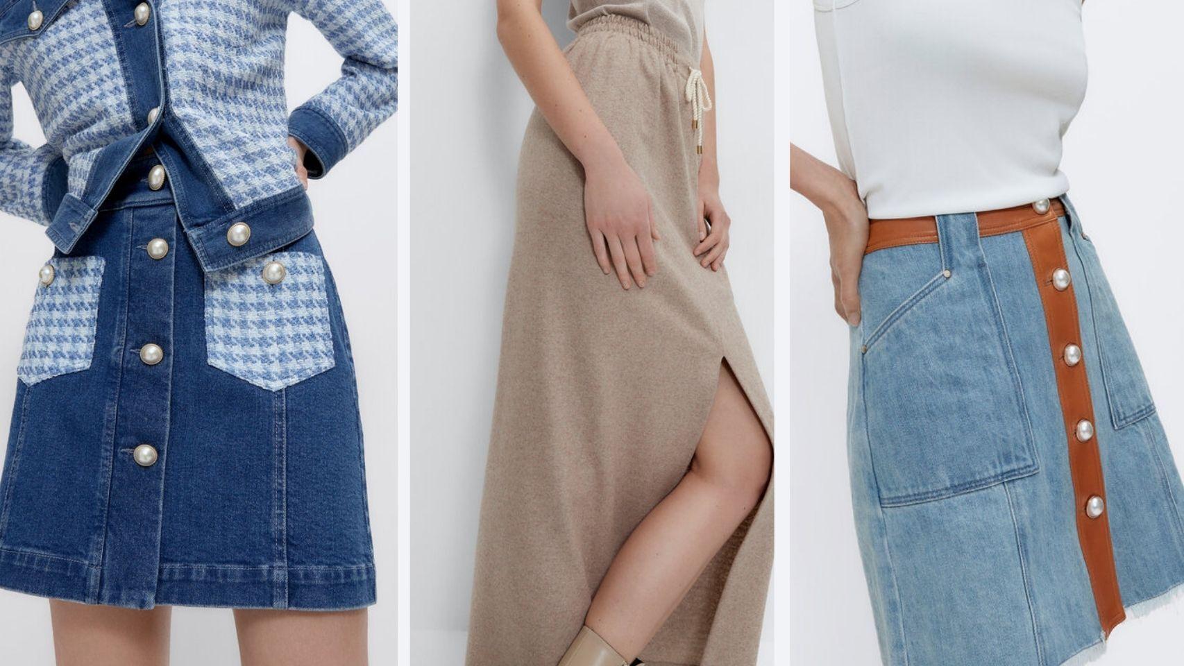 Con un diseño bicolor y una ligera asimetría, esta falda confeccionada con dos tejidos a contraste, tanto en color como en textura, cuenta con una cinturilla con hebilla metálica para ajustar a la cintura de forma cómoda.
