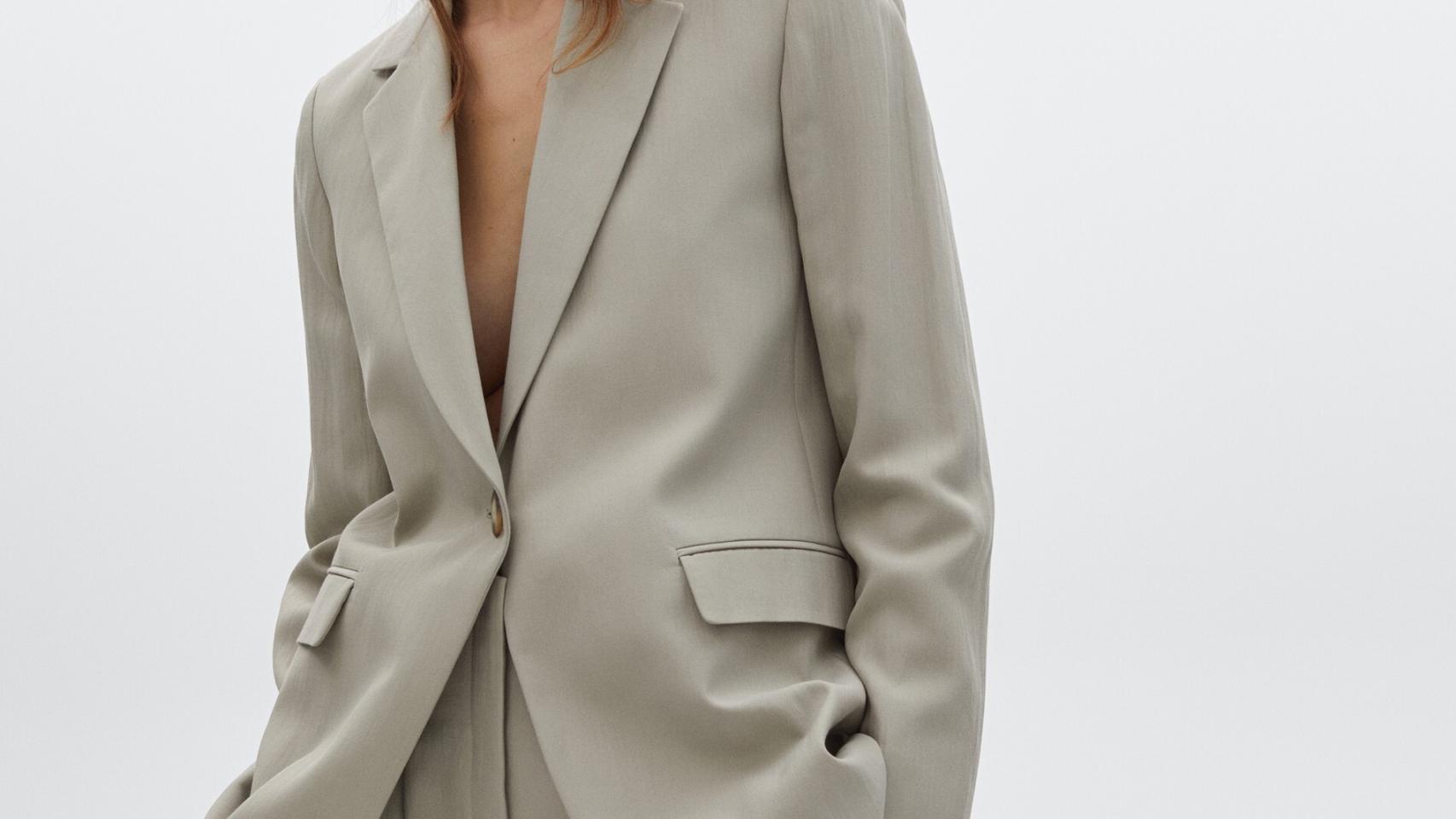 Otros de los fondos de armario que EL ESTILO ha encontrado entre los favoritos de Massimo Dutti es esta fabulosa americana en gris vigoré con un solo botón. Tiene cuello con solapa de muesca y dispone de pantalón a juego para completar el conjutno.
