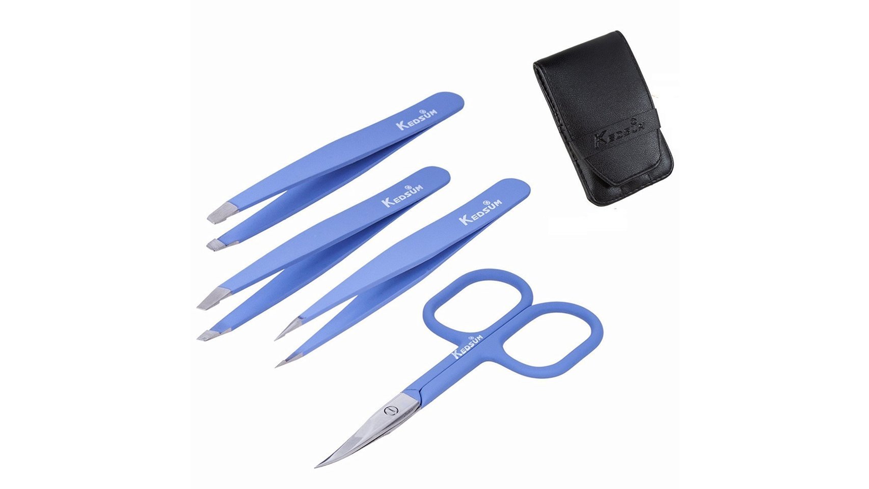- Set de 4 piezas de acero inoxidable de Kedsum: inclinadas, rectas, con la punta afilada para el pelo que crece hacia dentro y tijeras. Puedes comprarlo aquí.