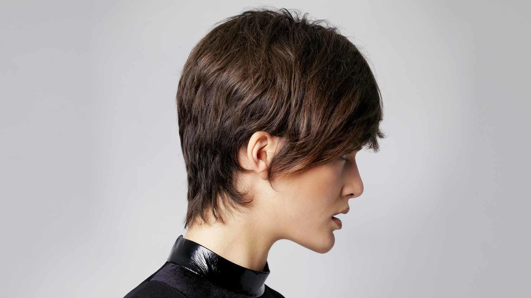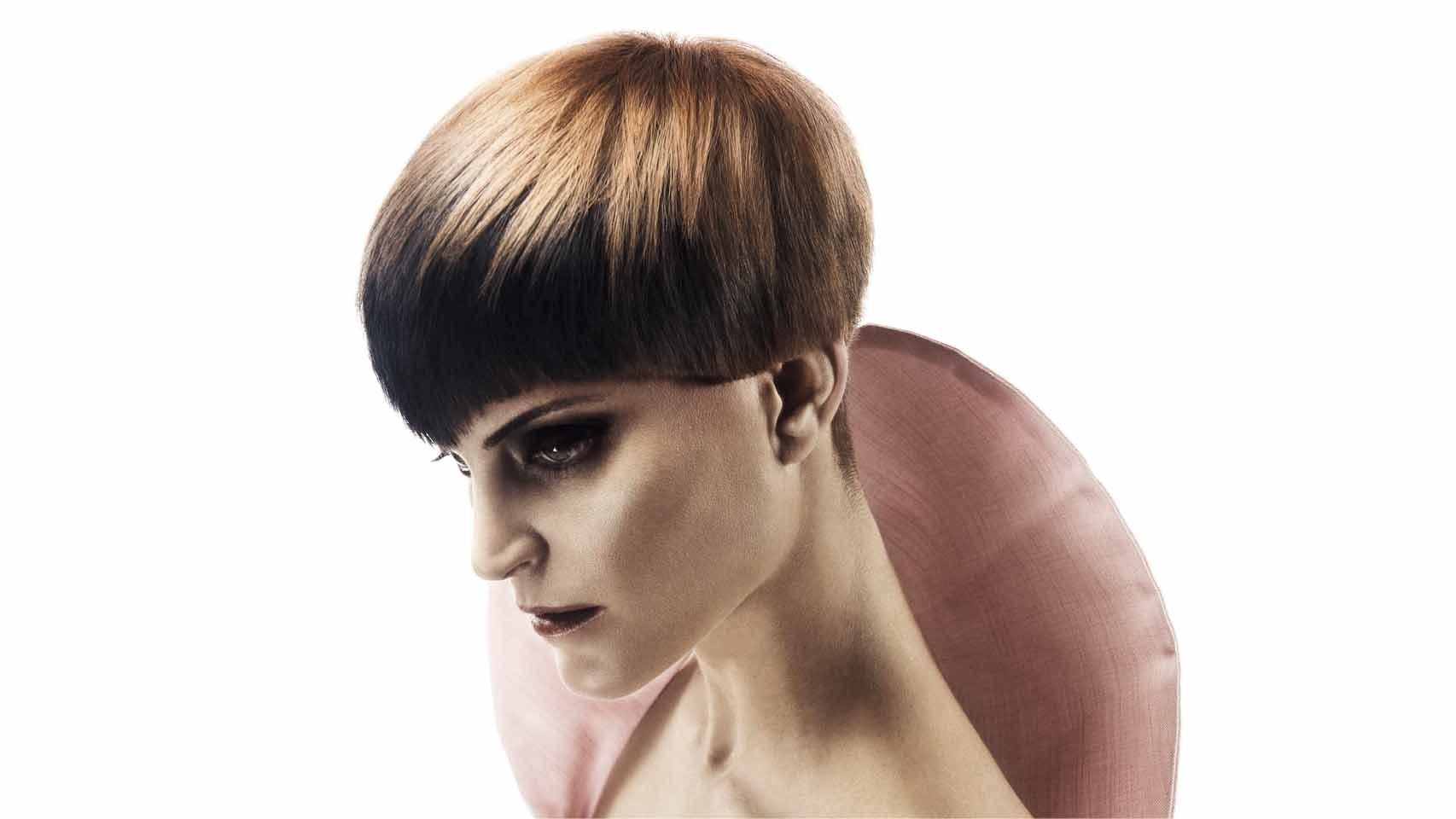 Por Franck Provost. El máximo longitudinal permitido no excede los 6 centímetros y cede todo el protagonismo a un flequillo asimétrico y dirigido hacia un lado. Un corte ideal para practicar contouring de color. Abstenerse rostro afilados o excesivamente largos.