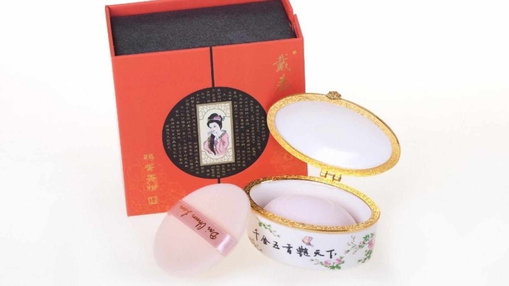 Maquillaje corrector con polvo de perlas: este producto es la primera base de maquillaje del mundo, pues su composición natural fue creada hace 380 años, durante el reinado del Emperador Chongzhen de la dinastía Ming. Cubre las manchas y nutre la piel, haciendo que el rostro se muestre luminoso e uniforme. | Precio: 60 euros.