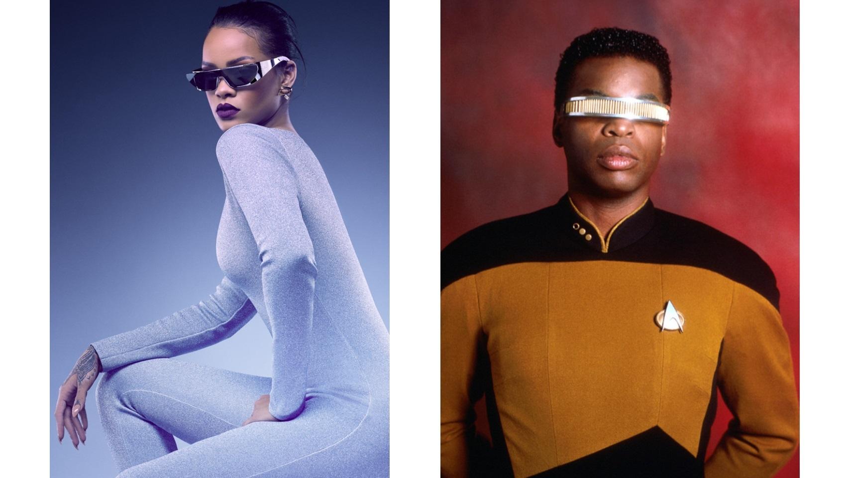 La influencia que la estética espacial tiene en la moda sigue muy presente en la actualidad. Un ejemplo es la colección de gafas de sol que la cantante Rihanna ha diseñado para Dior, inspiradas en el personaje Geordi La Forge de Star Trek. La colección, que salió a la venta este verano, cuenta con seis modelos de gafas con diseño futurista y colores llamativos.