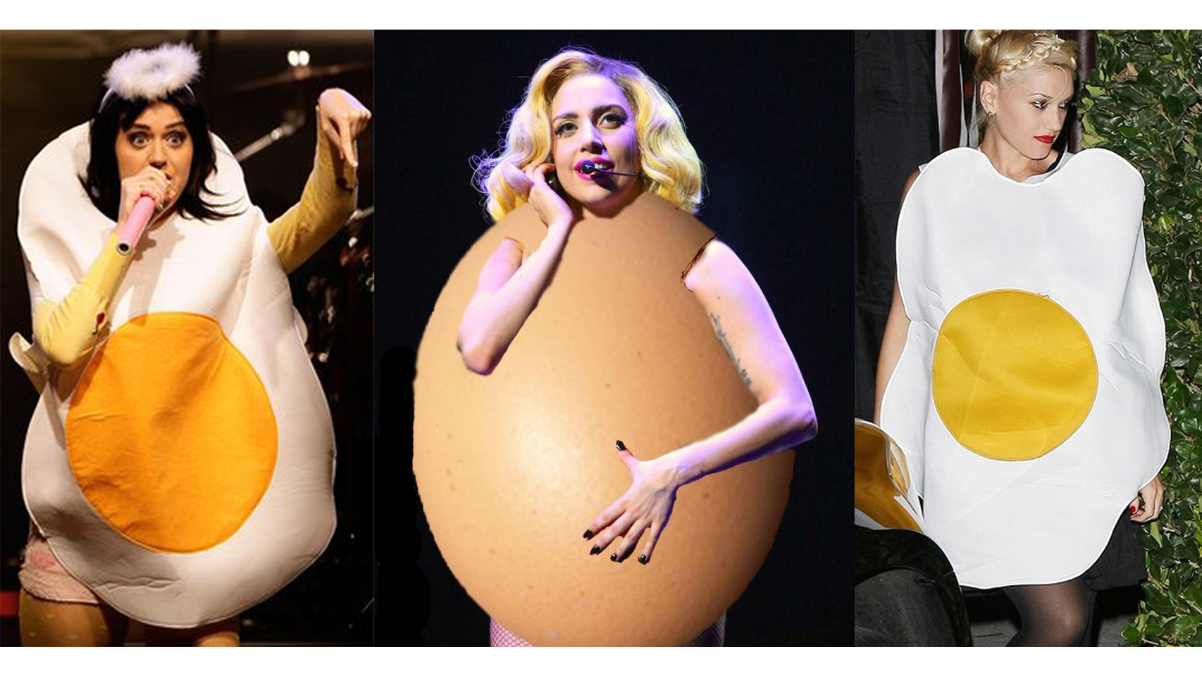 Katy Perry, Lady Gaga y Gwen Stefani con sus disfraces de huevo.