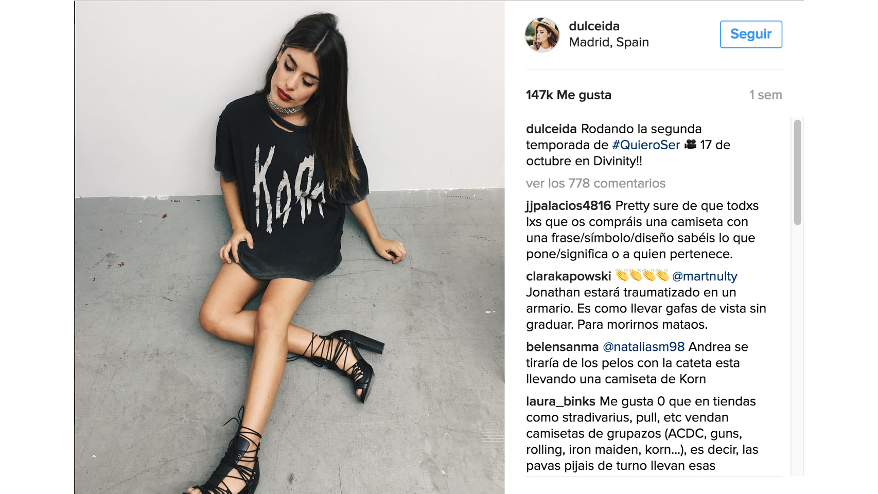La famosa Blogger Dulceida con una camiseta maxi.