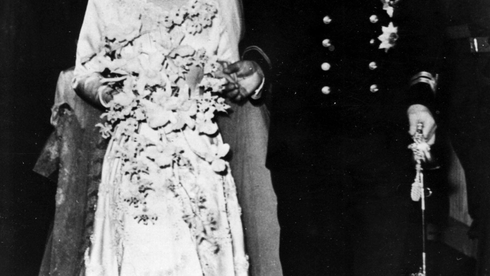 La reina Isabel II se casaba con el príncipe Felipe en 1947 con tan solo 21 años. Su vestido a medida fue hecho en satén y decorado con diez mil perlas blancas importadas y tul bordado con hilo de plata. Diseñado por Norman Hartnell, la cola llegaba hasta los 4 metros y nacía de una segunda pieza que comenzaba en sus hombros como si fuese una chaqueta. El velo estaba confeccionado en tul de seda. La tiara, por supuesto, fue un préstamo de su madre. | Foto: GTRES.