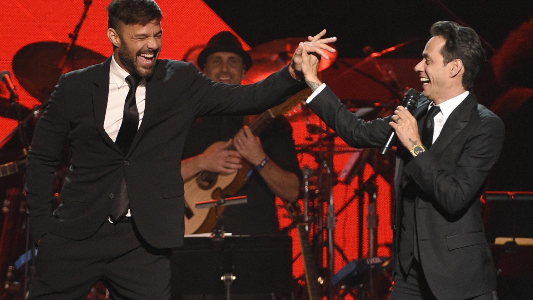 Ricky Martin aparece por primera vez en público tras darse a conocer su próxima boda. El puertorriqueño acudía al evento de los Grammy Latinos en honor a Marc Anthony y cantaba junto a su paisano ante la ovación masiva de la audiencia.