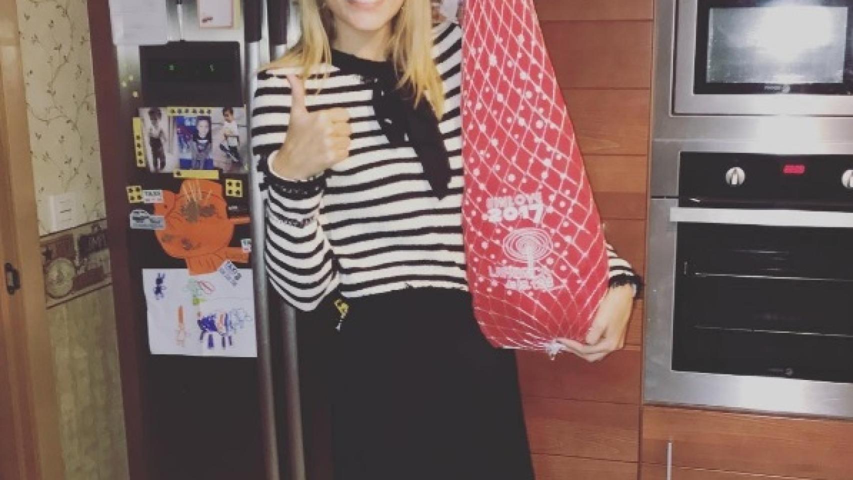 La modelo ha recibido este exquisito manjar navideño de parte de Mediaset. Alba fue este año presentadora de 'Hable con ellas' y colaboró - aunque fue un par de progamas - en el 'Debate de Gran Hermano'. Gracias a ese trabajo se ha llevado el jamón ibérico de Telecinco.