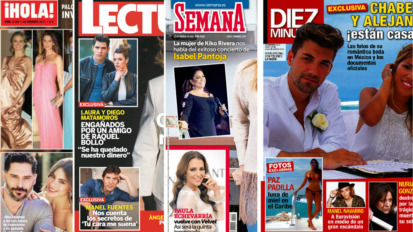 Diez Minutos ha llevado a su portada la boda de Chabelita y Alejandro Albalá. Se casaron el 23 de junio de 2016 en Cancún, México. Actualmente han roto su relación pero continúan siendo marido y mujer. La que sí disfruta de su amor en Paz Padilla, que estuvo de luna de miel la pasada semana en el Caribe. Y la publicación también recoge la polémica de Eurovisión.
