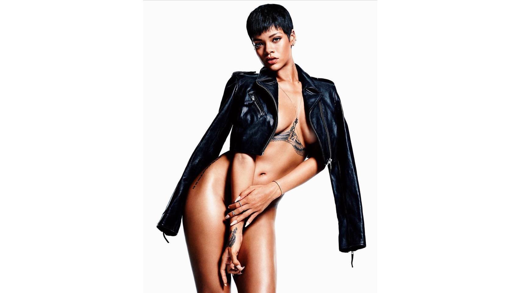 Rihanna ha posado así de espectacular: desnuda y con una biker de cuero sobre sus hombros. La de Barbados ha dejado con la boca abierta a más de uno con esta imagen, una de las más sensuales de la cantante.