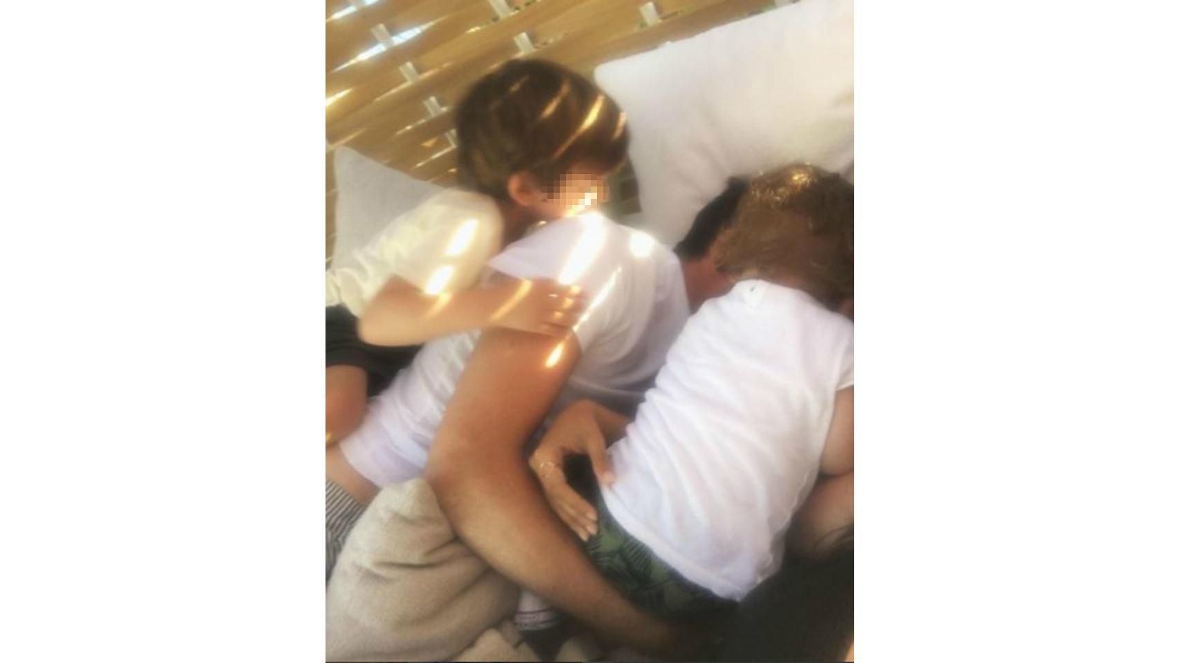 Con los pequeños Martín y Lucas encima de sus papis. Así es como cada mañana se despierta la familia formada por Iker Casillas y Sara Carbonero. Un buen achuchón colectivo es el secreto que les ayuda a afrontar el día.