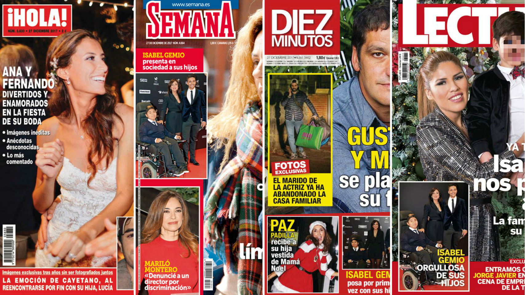 'Diez Minutos' se ha hecho eco en su portada de la polémica de la semana: el caso de Gustavo González y María Lapiedra. La pareja está pensando en su futuro juntos mientras Mark Hamilton, el ya exmarido de la actriz, abandona el domicilio familiar. Además, Paz Padilla ha recibido a su hija vestida de Mamá Noel e Isabel Gemio presenta a sus hijos ante los medios.