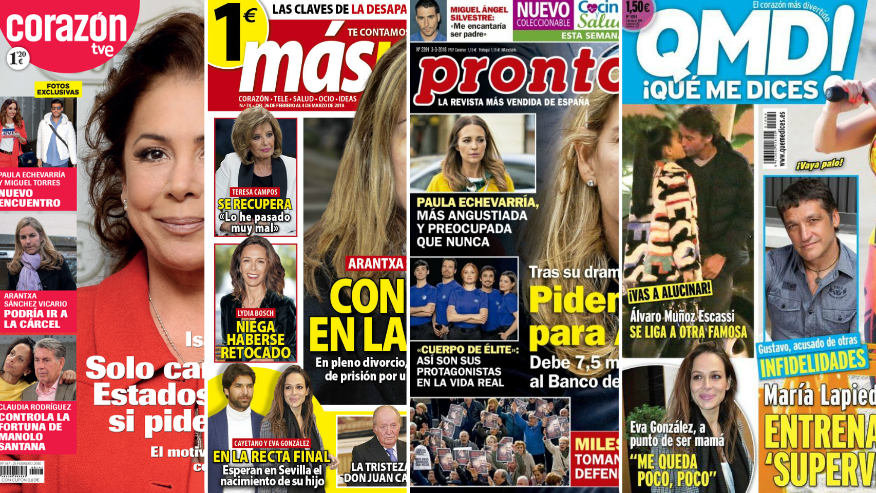 'Qué Me Dices!' lleva en su portada a María Lapiedra preparándose para su aventura en 'Supervivientes' mientras a Gustavo González no dejan de salirle amantes. Además, en primera plana vemos una fotografía de Álvaro Muñoz Escassi besando apasionadamente a una morena. Su nueva conquista es joven y famosa. Y Otra que está feliz es Eva González que dará a luz en solo unos días en Sevilla.
