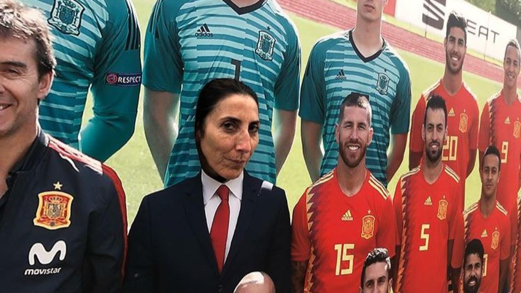 Paz Padilla está feliz de que comience el Mundial de Rusia y lo demuestra así, 'fichando' por la Selección. Una imagen muy divertida a la que nos tiene acostumbrados.
