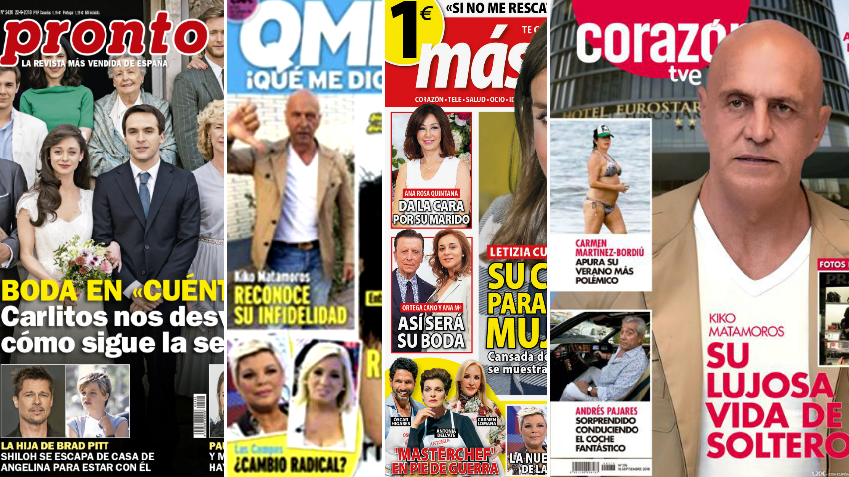 'Corazón TVE' presenta en su portada a Kiko Matamoros. Separado ya de Makoke -y también debido a la distancia física entre ellos después de que la malagueña entrase en 'GH VIP'- el colaborador vive sin preocupaciones en un hotel de gran lujo de Madrid. En otro orden de cosas, Carmen Martínez-Bordiú afronta los últimos días de su verano más complicado y Andrés Pajares estrena coche.