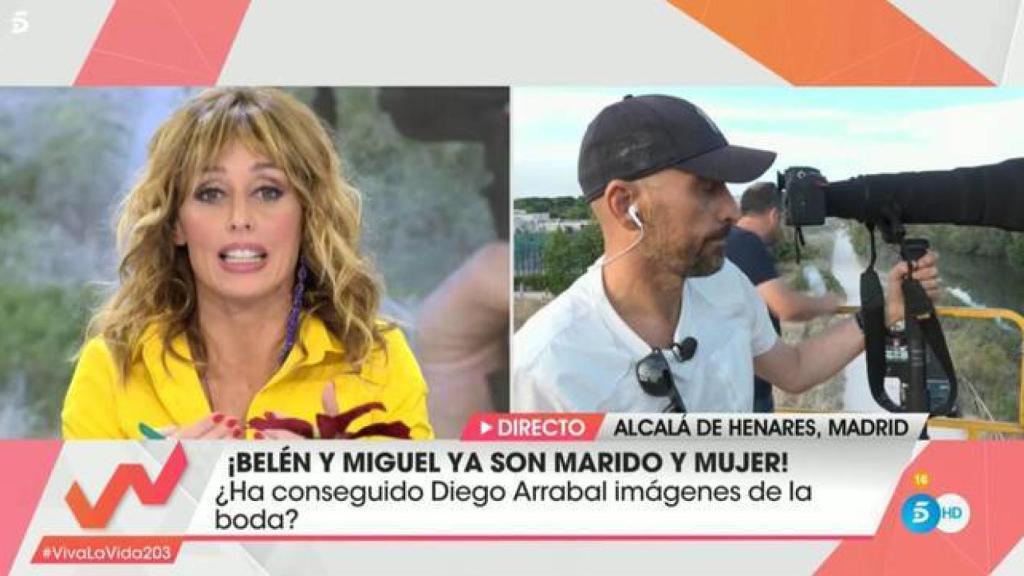 Diego Arrabal ha conectado en directo con el programa Viva la vida, presentado por Emma García, para anunciar las detecciones. Desde las afueras de la propiedad privada donde se ha celebrado la ceremonia, el fotógrafo ha montado una grúa para pillar con su teleobjetivo a los recién casados.