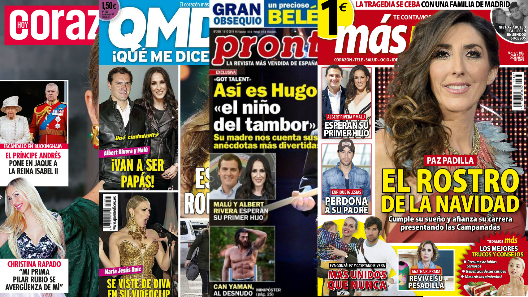 Paz Padilla es la protagonista indiscutible de la revista Más y más. La humorista y presentadora de Sálvame será este año la encargada de dar las Campanadas en Telecinco junto a Jesús Vázquez, cumpliendo así uno de sus sueños. La publicación también recoge el embarazo de Malú y Albert Rivera, además del difícil momento que atraviesan Eva González y Cayetano Rivera después de que el torero apareciera en una imágenes con una amiga en Londres.