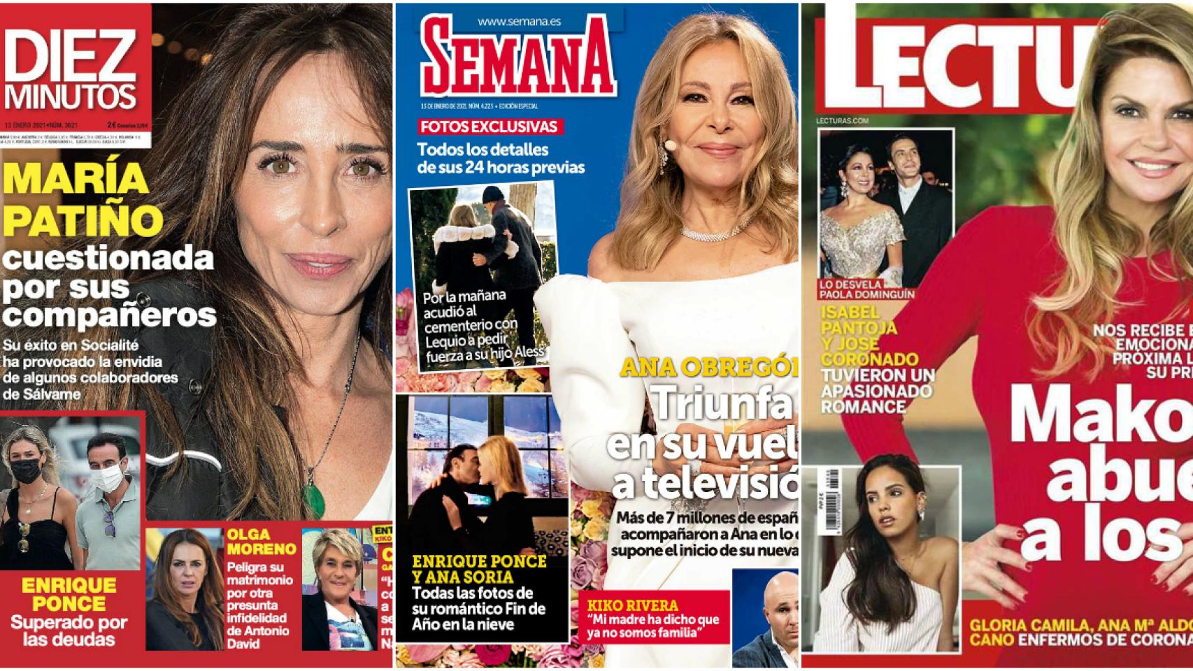 La revista recoge el gran éxito que ha tenido la retransmisión de las campanadas de RTVE con Ana Obregón como gran reclamo y publica fotos exclusivas de las 24 horas previas de la actriz. Además, la primera plana de este martes muestra las románticas fotos de Enrique Ponce y Ana Soria y las incendiarias declaraciones de Kiko Rivera, que ha asegurado que su madre le ha transmitido que ya no son familia.