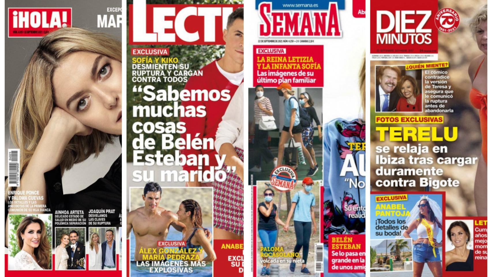 Tras la entrada de Bigote Arrocet en la casa de 'Secret Story', la revista asegura que María Teresa Campos se encuentra "al límite" y pasando un mal momento. En otro orden de cosas, 'Semana' ha conseguido en exclusiva imágenes del último plan familiar de la reina Letizia con su madre, Paloma Rocasolano, y su hija pequeña, Sofía. Mientras, Belén Esteban y su marido acuden a una boda de unos amigos; y su compañero, Kiko Hernández abre una empresa de alimentación, tal y como desvela la cabecera.