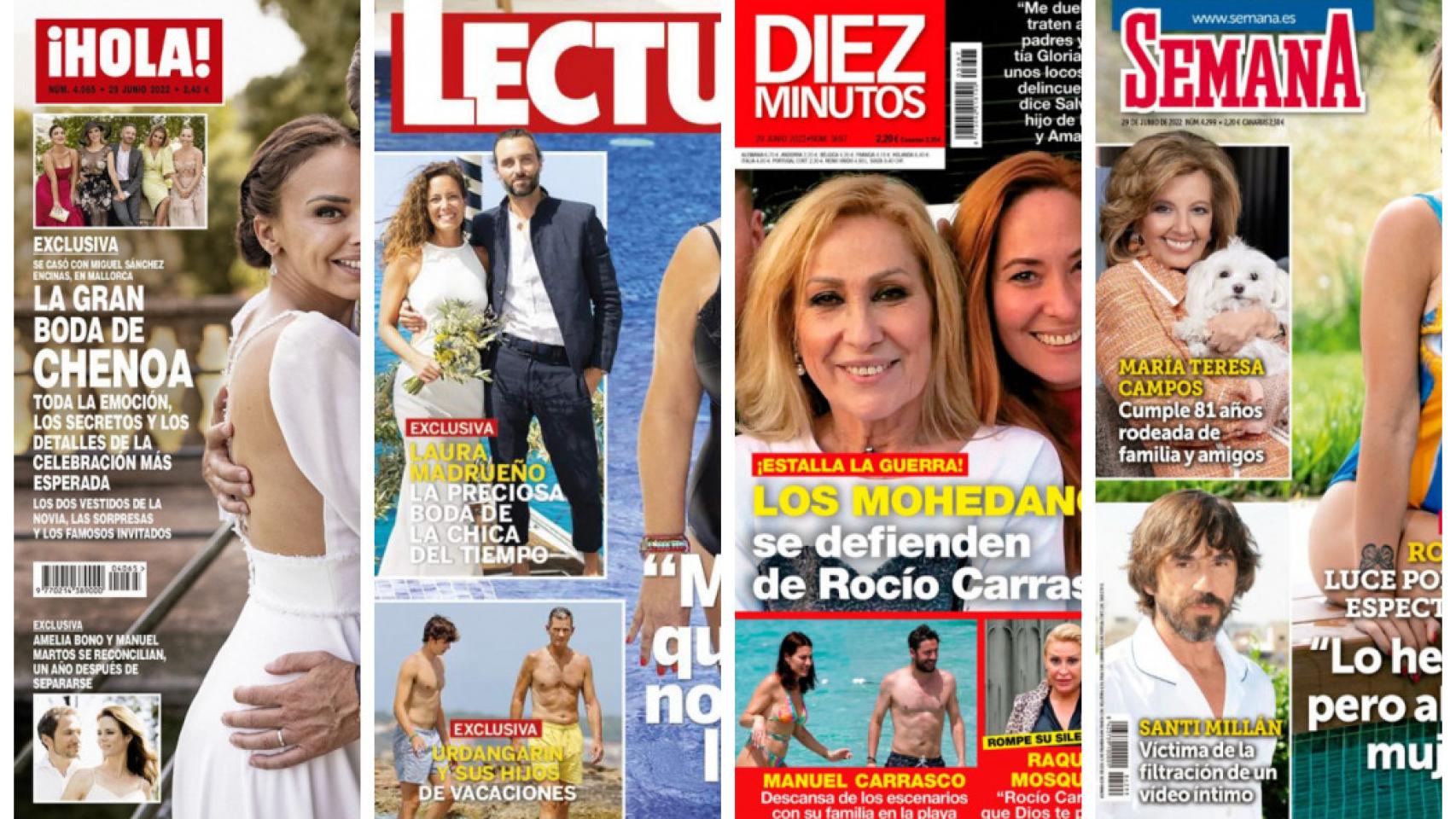 La cabecera rosa cede gran parte de su portada a la idílica boda de la cantante Chenoa y el doctor Miguel Sánchez Encinas. La revista revela todos los detalles en un amplio reportaje en el que se puede ser testigo de la emoción de los novios y de los invitados, entre los que estaban cinco compañeros de Operación Triunfo. La artista lució dos vestidos de novia y la fiesta estuvo llena de sorpresas en mitad de la Sierra de la Tramontana mallorquina. En otro orden de cosas, Amelia Bono y Manuel Martos se han reconciliado un año después de anunciar su separación; y la revista también recoge la histórica reunión de la realeza por el 18 cumpleaños de Ingrid Alexandra de Noruega.