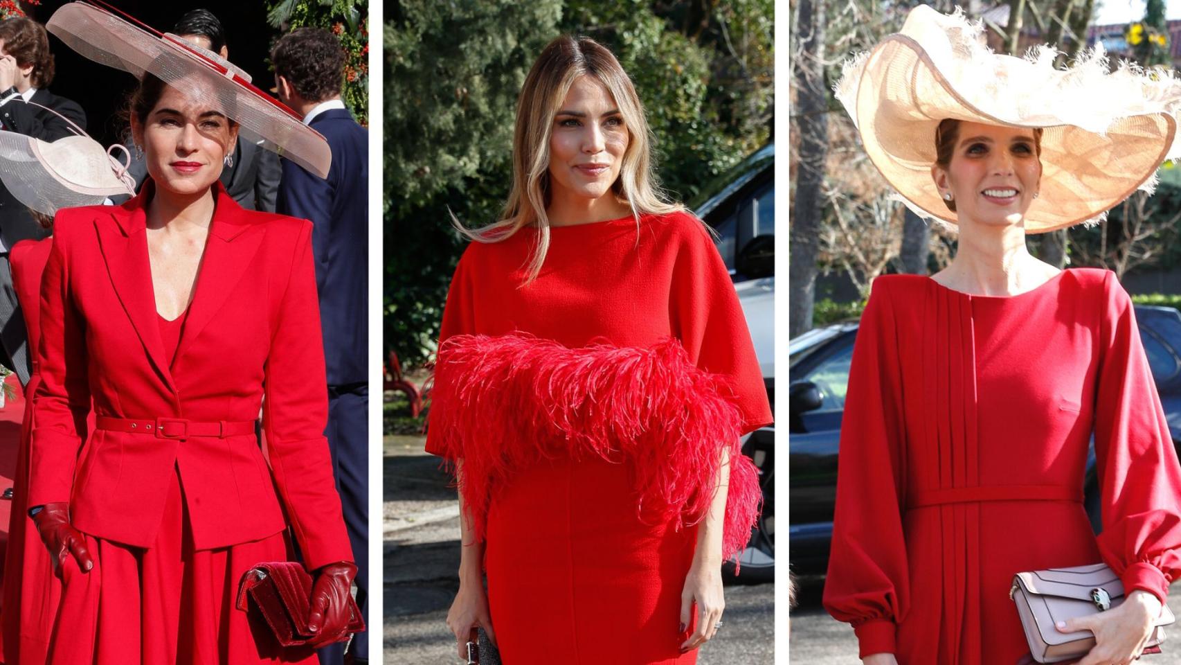 El rojo ha sido el color predominante de las asistentes, sin duda por indicación de la flamante novia, que iba vestida con un diseño minimal de Jorge Vázquez. Esta boda ha supuesto la reaparición en público de Luis Alfonso de Borbón (48) y Margarita Vargas (39), que no se dejan ver mucho en público salvo en ocasiones señaladas. La aristócrata venezolana, muy elegante, ha 'rivalizado' en elegancia con Lourdes Montes (38) y la modelo Rosanna Zanetti (34). Curiosamente, ninguna de las dos estaba acompañada de sus respectivas parejas. Tampoco Carla Barber (32), embaraza de su segundo hijo. Entre los invitados también se encontraba el cantante Carlos Baute (48). con su mujer y sus tres hijos y Álvaro Castillejo Preysler (36).
