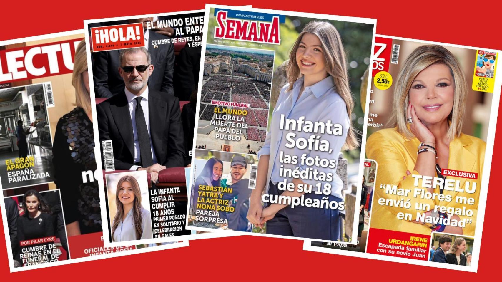 La revista ¡HOLA! recoge en su portada una bonita imagen de los Reyes en el funeral del Papa Francisco en el Vaticano, con gafas de sol y riguroso luto. Además, se hace eco del 18 cumpleaños de la infanta Sofía y de su primer posado en solitario desde Gales. También incluye el testimonio de valentía de Lucía Villalón ante el coraje de una madre y los problemas de salud de sus hijos.