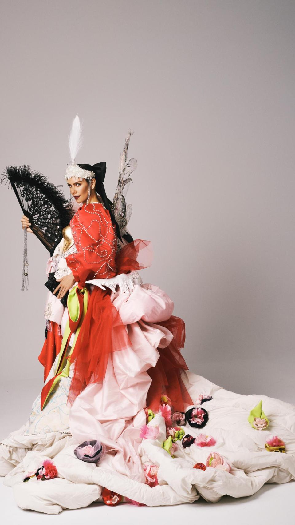 Ahora, 12 años en este 2025 con su diseño más estrafalario. El que cierra el ciclo. De cada uno de sus 11 anteriores outfits, Cristina ha selecciondo ese elemento icónico clave de la pieza. El resultado: el que se ve.