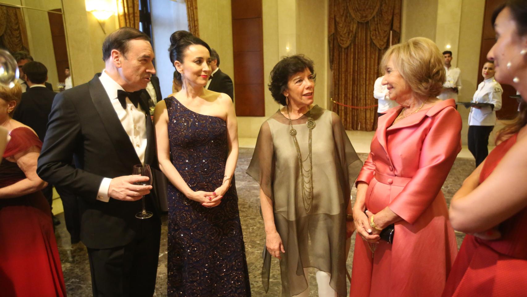 La ministra de Educación, Isabel Celaá, interviene durante la cena benéfica.