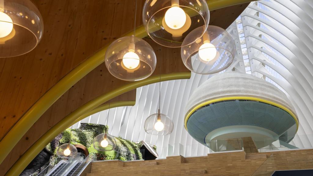 Para su adecuación al proyecto, se ha respetado el edificio original, pero dotándolo de una armonía en la que la sostenibilidad ha sido el eje de la intervención. Así, se ha obtenido una piel característica formada por diferentes cápsulas y protegida por el caparazón original que delimita un espacio versátil y abierto al público. Como explica la Fundación “la Caixa”, el proyecto se define como un paisaje dentro del edificio en el que se conectan células vivas “en un ecosistema protector”.