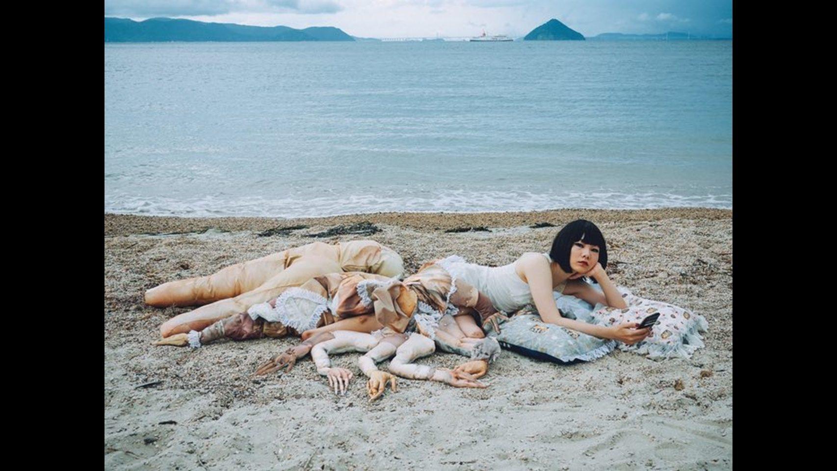 Katayama en una playa de Naoshima. El trabajo fue inspirado por el nacimiento de la Venus de Botticelli. Transeúnte, 2016, Mari Katayama.