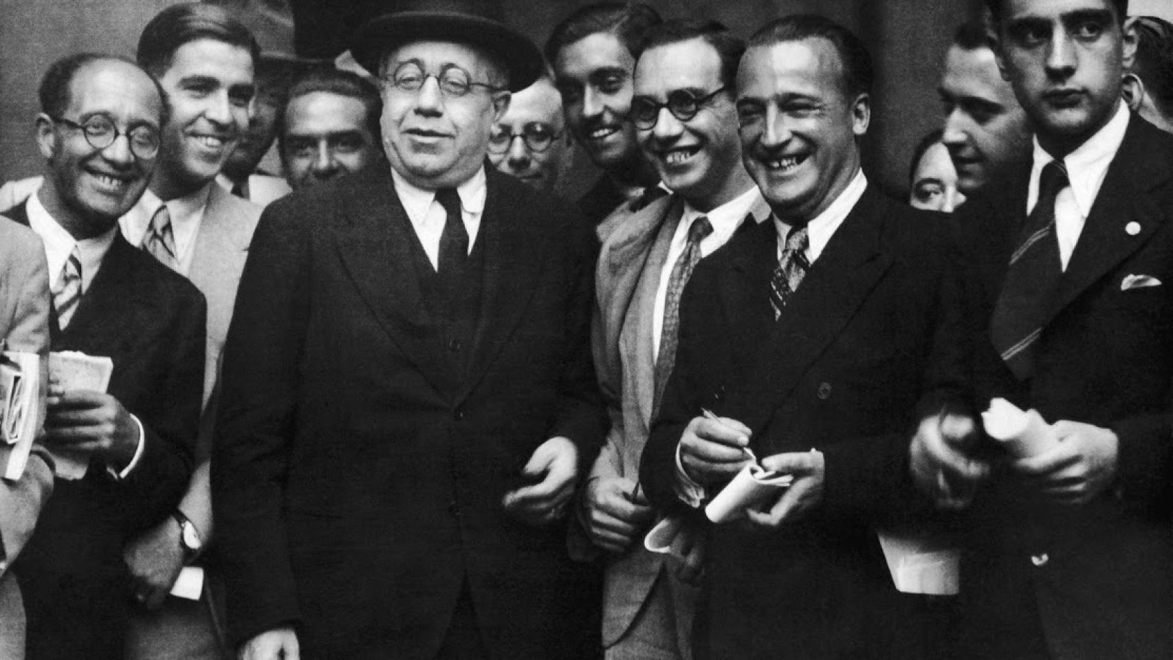 Valle-Inclán y Azaña, en el centro, en una tertulia en el Ateneo de Madrid en 1930. BNE