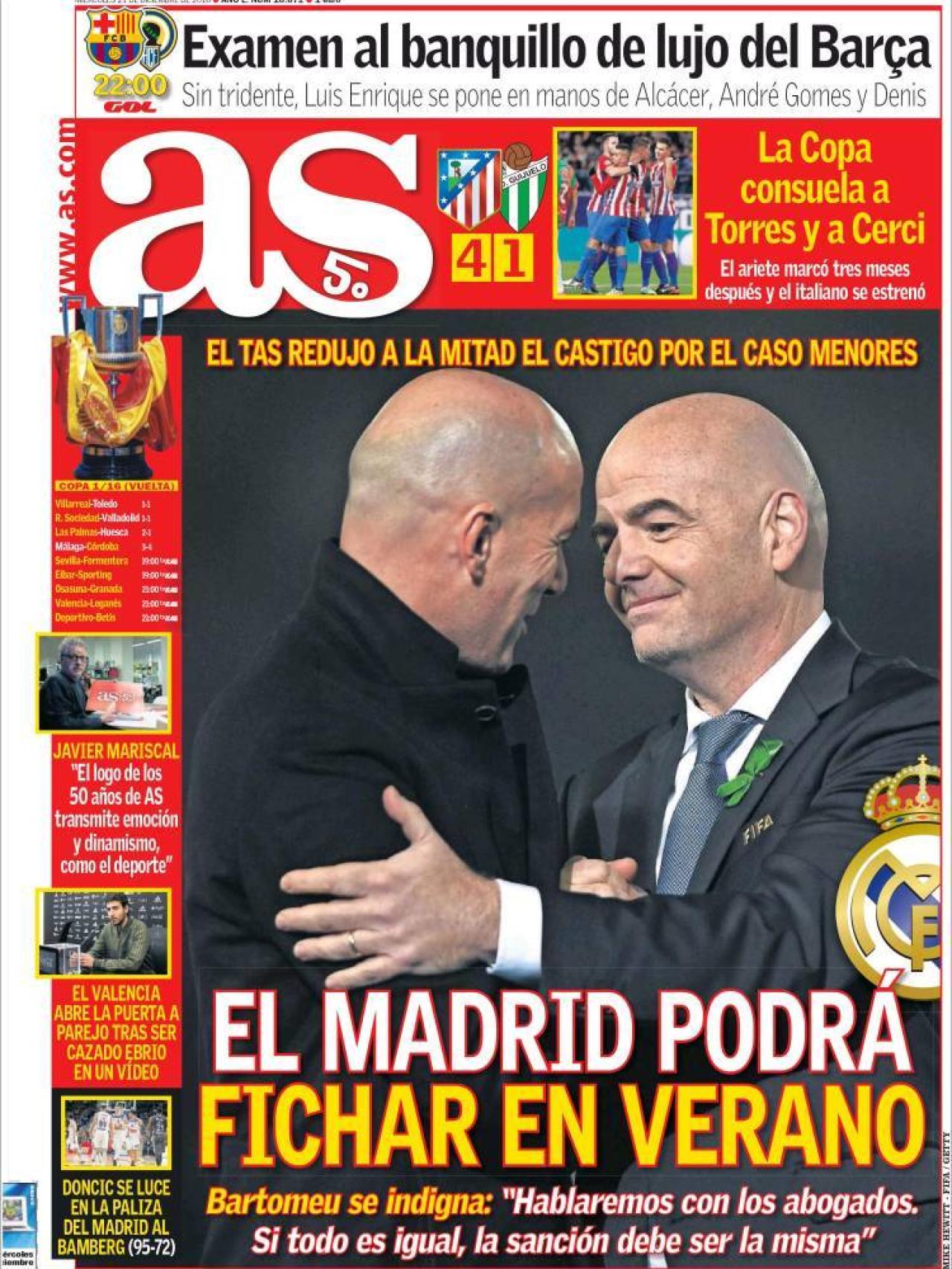 AS abre con la noticia del día de ayer: el Madrid podrá fichar en verano.