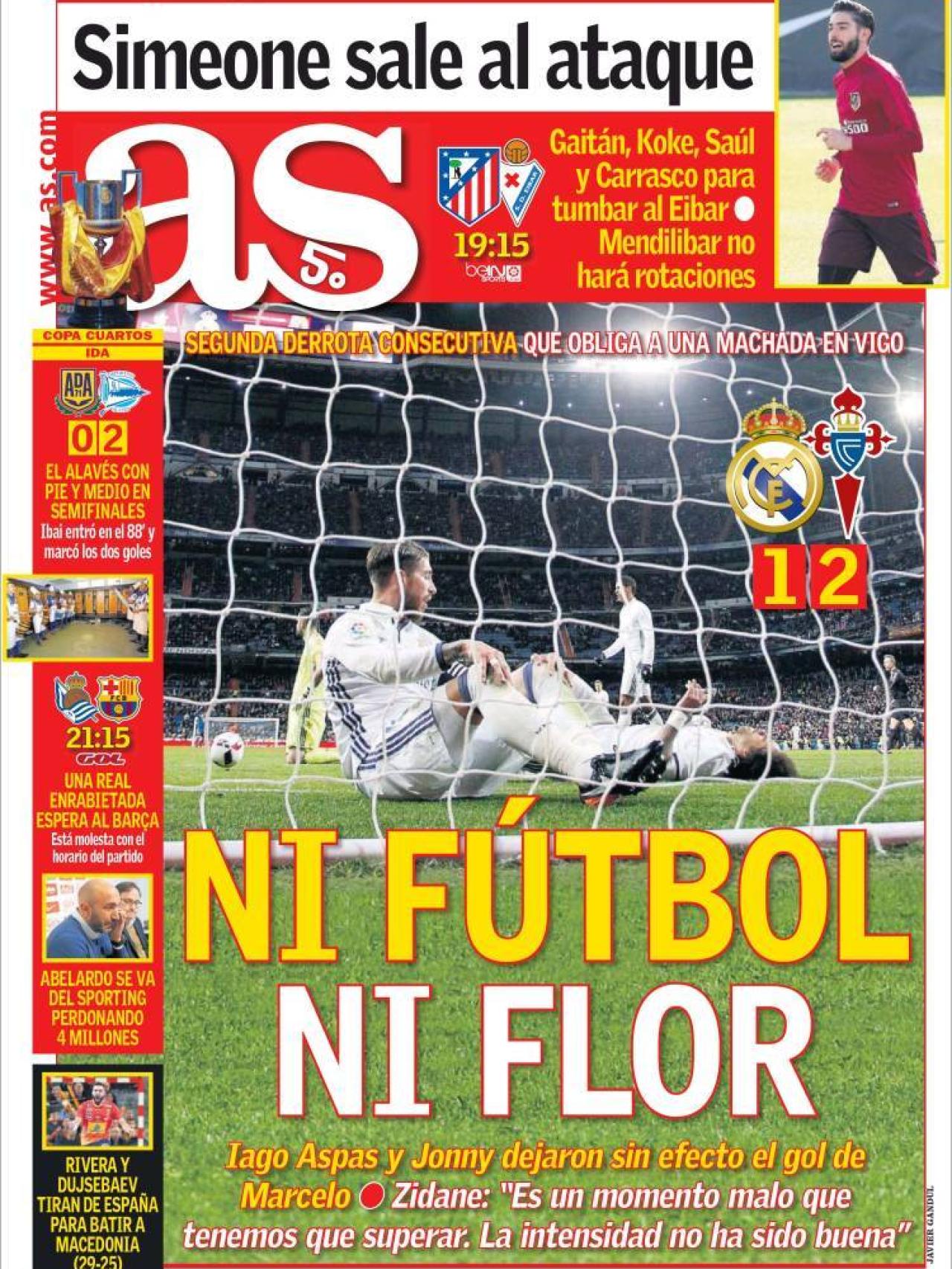 AS destaca el mal partido y la mala suerte del Real Madrid ante el Celta.