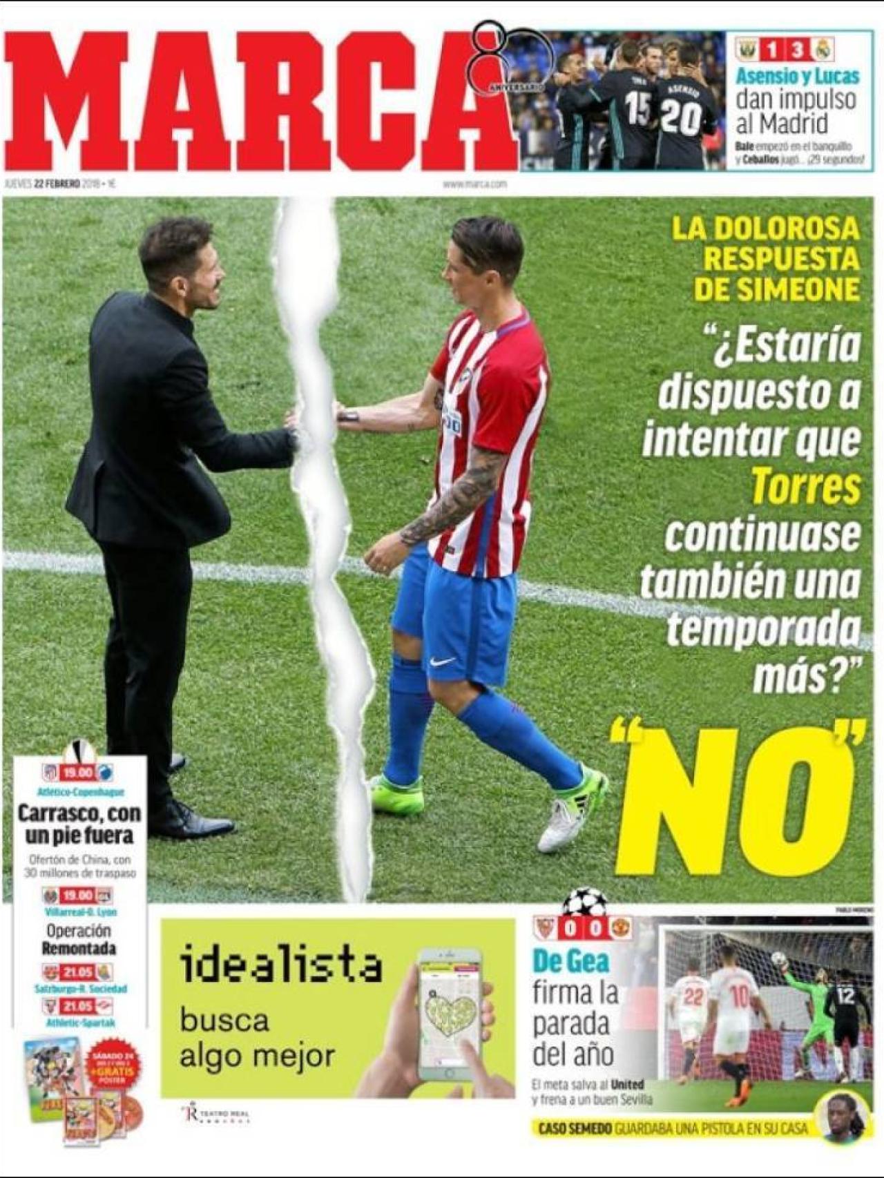 MARCA destaca la ruptura entre Torres y Simeone