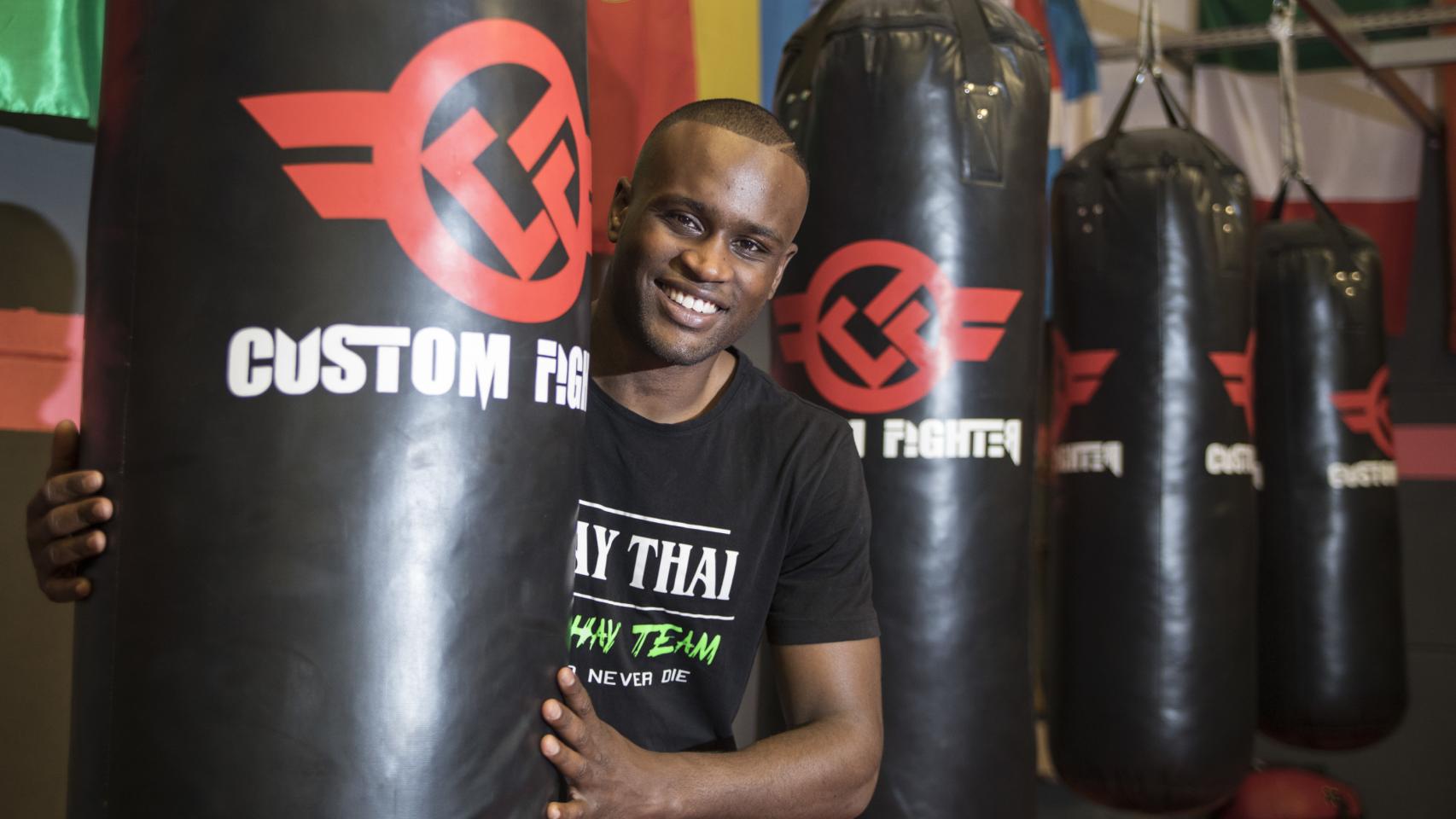 Nayanesh golpea el saco.