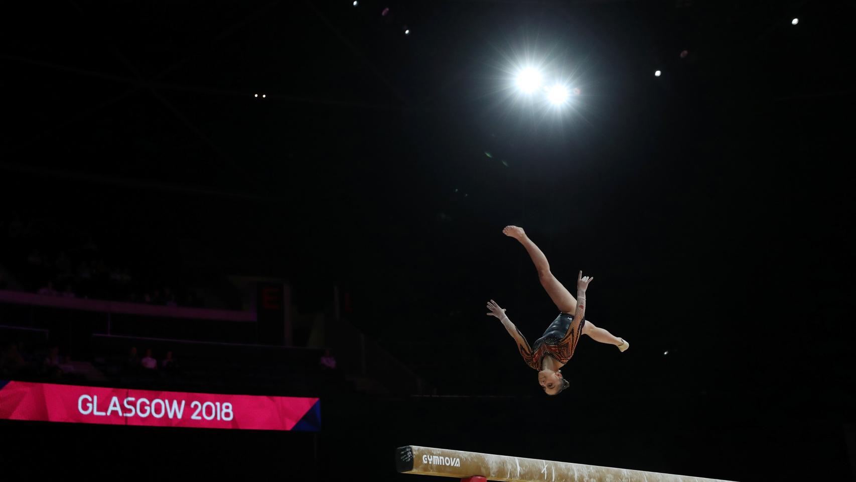 Sara Davidsen, durante su ejercicio de gimnasia rítmica