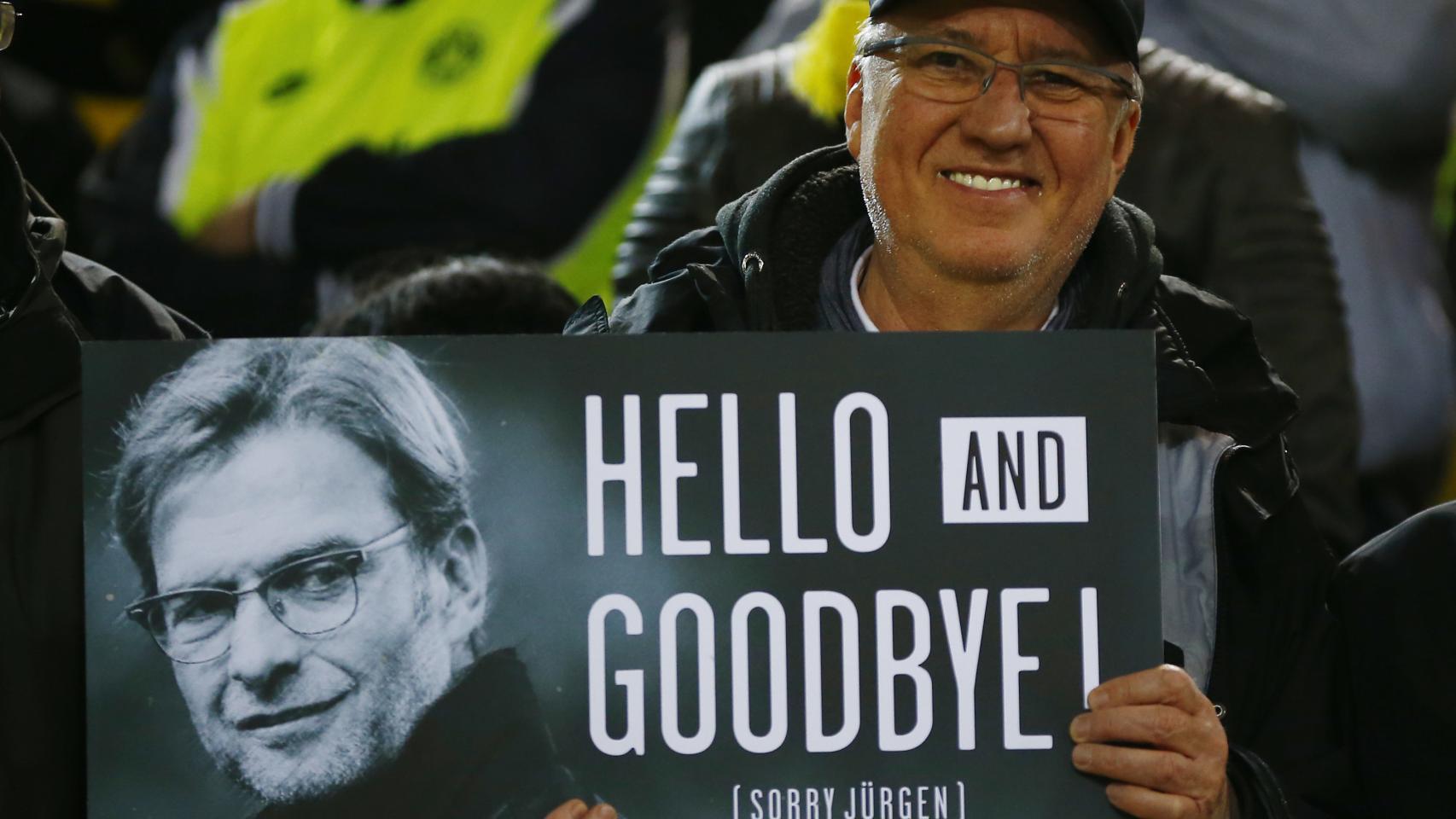 Diversos aficionados llevaron pancartas sobre Klopp al Signal Iduna Park.